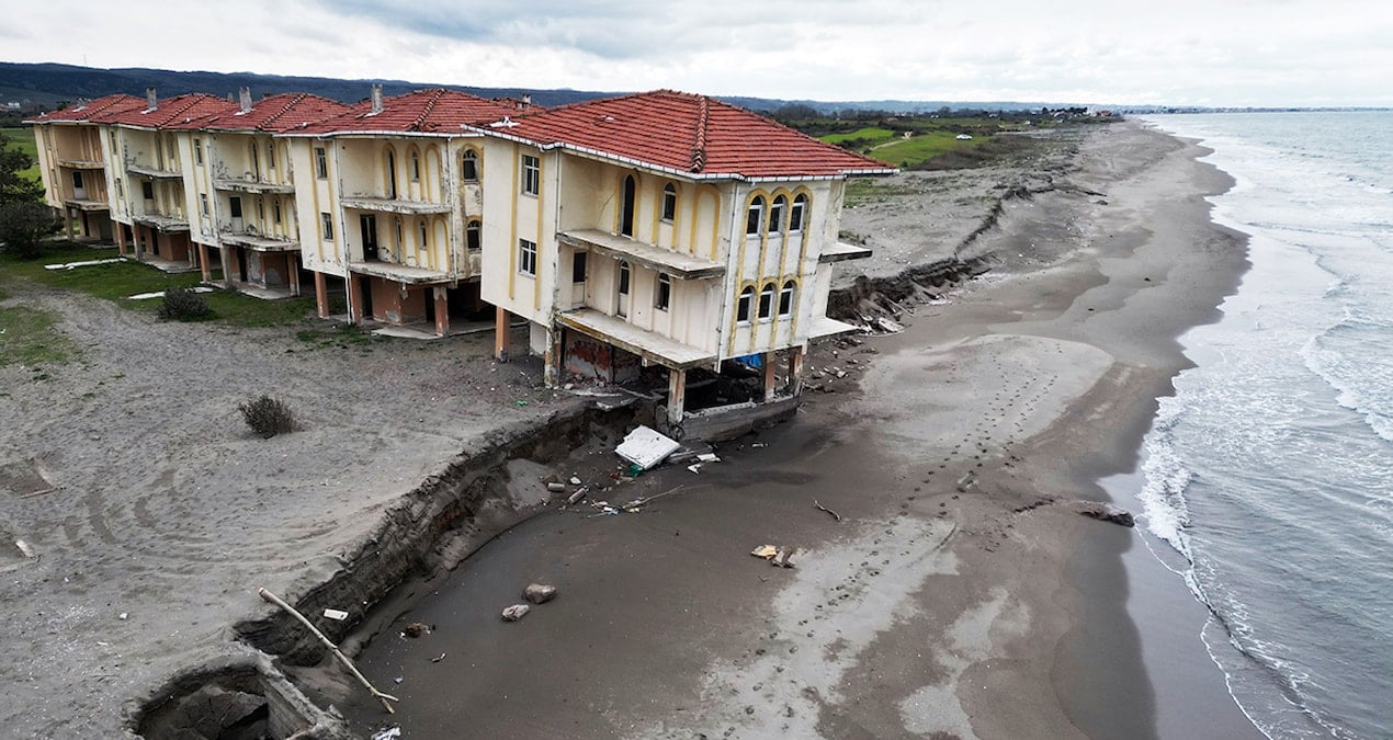 Sakarya’nın Karasu ilçesinde yaşanan kıyı erozyonu, eski bir tatil köyündeki villa ve havuz tesislerini çökme riskiyle karşı...