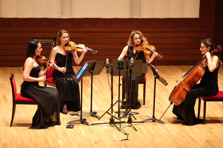Yaklaşık 1,5 saat süren konserde salonu dolduran sanatseverler, Fazıl Say’ın da aralarında bulunduğu Türk bestecilerinin eserlerini dinledi. Grubun olağanüstü performansı izleyiciler tarafından ayakta alkışlandı. Uluslararası alanda da büyük ilgi gören grubun üyeleri arasında kemanda Gülen Ege Serter ve Şeniz Serter, viyolada Pınar Basalak ve viyolenselde Mutlu Varlık Kocaili bulunuyor.