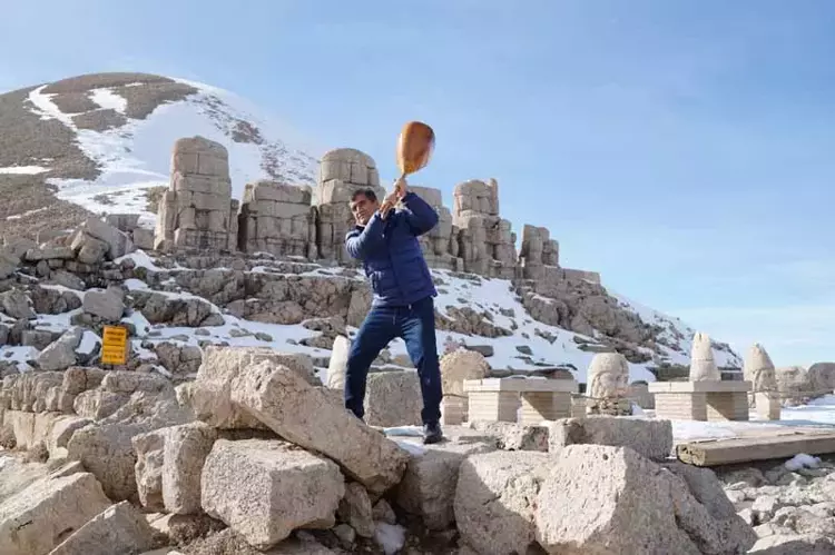 Geçtiğimiz günlerde UNESCO korumasındaki Nemrut Dağı’na çıkan türkücü Aydın Aydın, yapay zekaya tepki için ilginç bir protestoya imza atmış ve beraberinde getirdiği bağlamayı tarihi taşlara vurarak parçalamıştı.